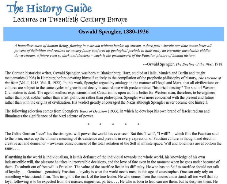The History Guide: Oswald Spengler, 1880 1936