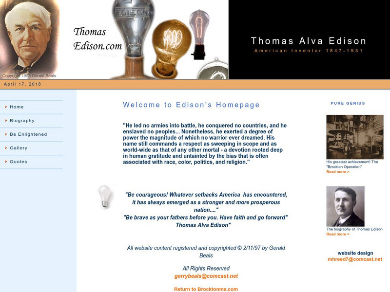Site devoted completely to the achievements of Thomas Edison. Includes a detailed biography, inventions, photo gallery, and quotes.