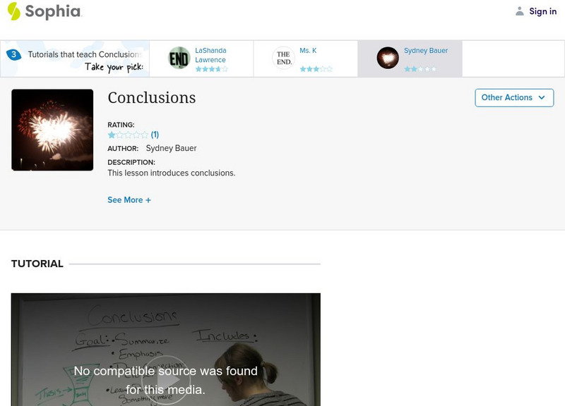 A video lesson explaining the purpose and structure of a conclusion to an essay. [4:39]