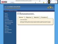 Students experiment with a vibrating ruler and a kazoo to study the different pitches and frequencies they produce. They create both high and low pitch sound waves. They examine how engineers use sound energy when designing electronic...