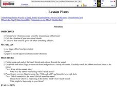 Students explore how vibrations create sound by strumming a rubber band. They feel the vibration of their own vocal chords. Then they explore the motion of sound waves and echoes. They rely on their own hearing to locate others in their...