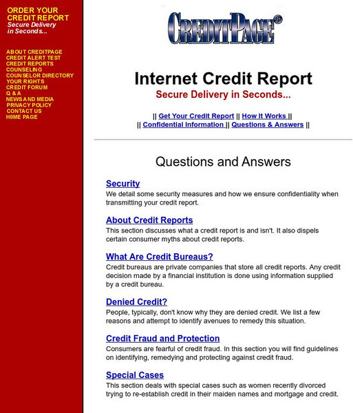 This site explains credit reports, credit bureaus, denial of credit, credit counseling, credit fraud and protection, improving credit, and filing for bankruptcy.
