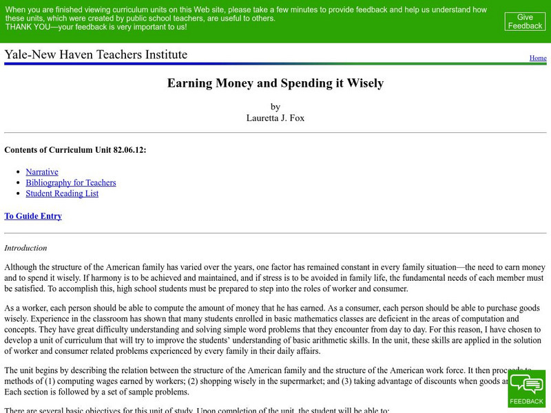 Yale New Haven Teachers Institute: Spending Money Wisely