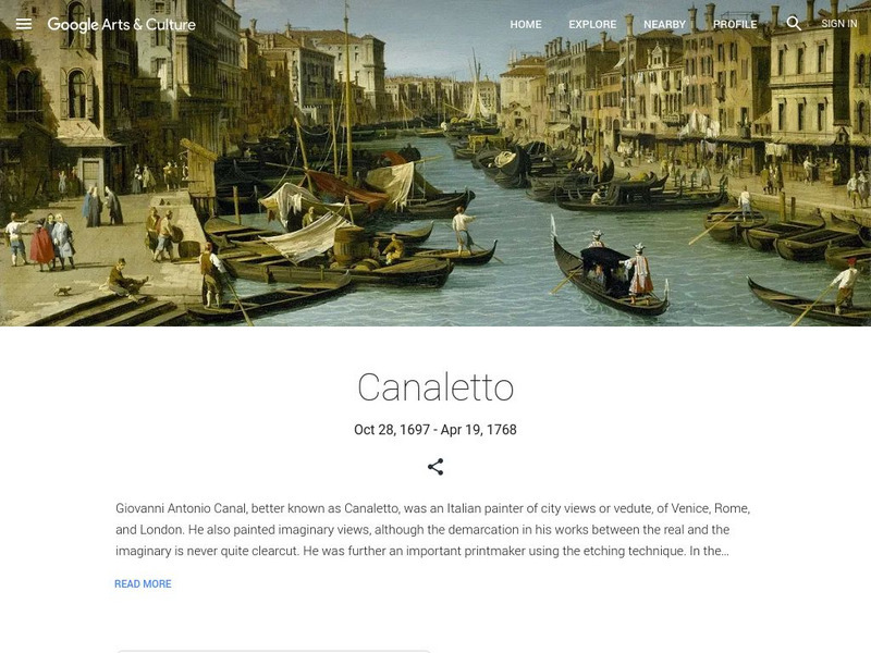 This visual website from Google Cultural Institute shares background information and photos about Canaletto.