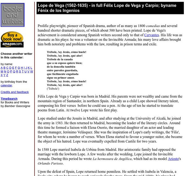 Author's Calendar: Kirjasto: Lope De Vega: Father of Spanish Drama