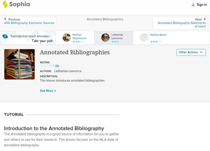 Sophia: Annotated Bibliographies: Lesson 2