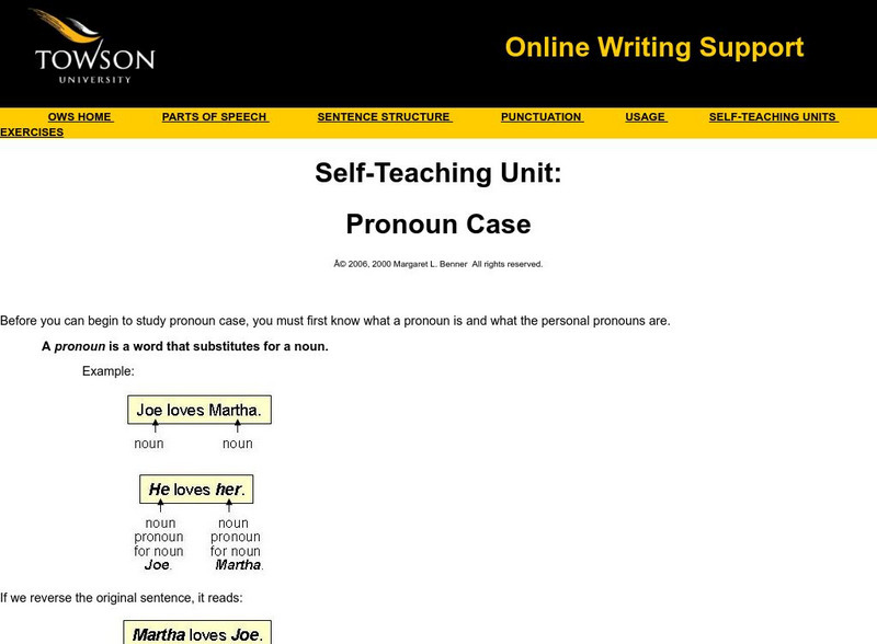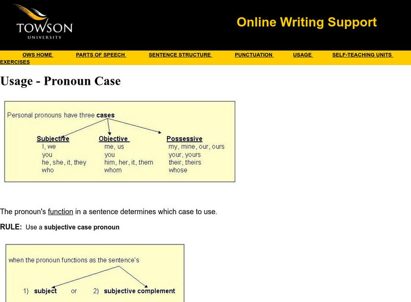 Towson University: Online Writing Support: Self Teaching Unit: Pronoun Case