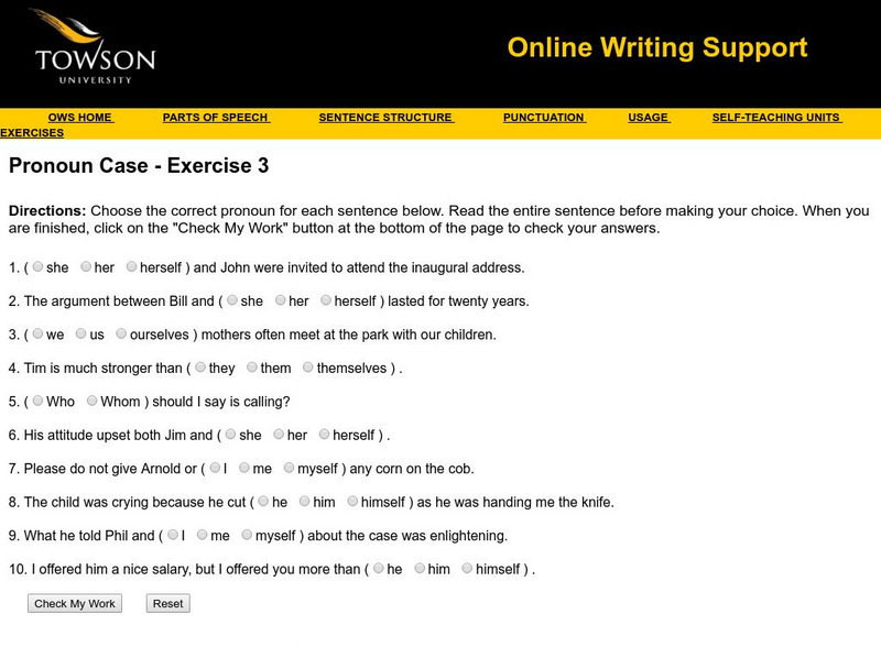 Towson University: Ows: Pronoun Case Exercise 3
