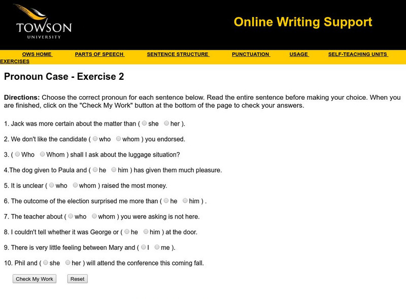 Towson University: Ows: Pronoun Case Exercise 2