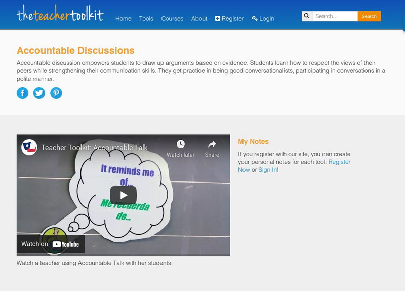 A video and description of accountable discussion in the classroom. Accountable discussion empowers students to draw up arguments based on evidence. Students learn how to respect the views of their peers while strengthening their...