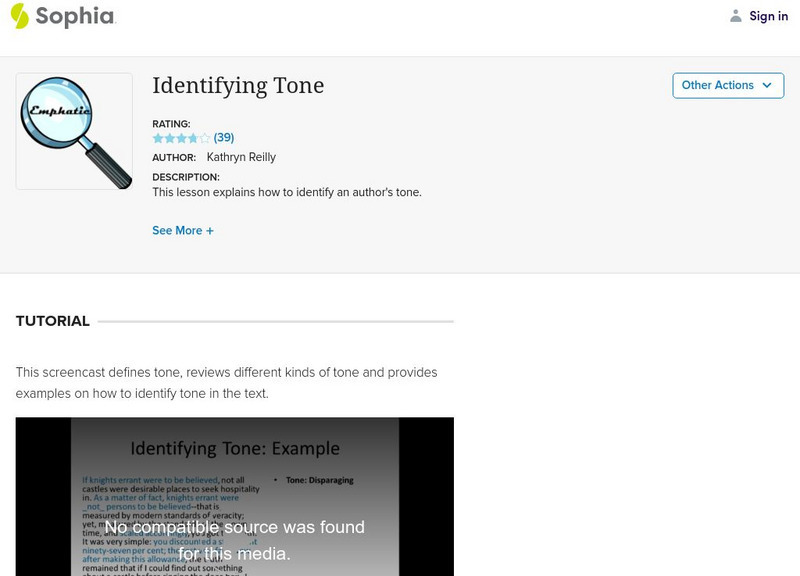 This lesson focuses on how to identify the tone of a passage. It defines tone, explains how to identify positive, negative, and neutral tones, and demonstrates how to identify tone with both a literary and a non-fiction example. [5:14]