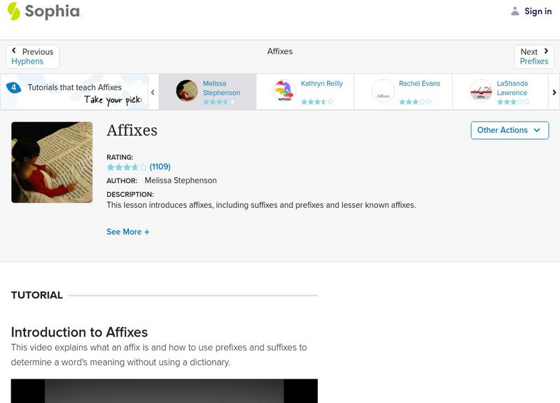 This lesson shows how to use affixes to determine the meaning of unknown words. It provides definitions of terms and demonstrates how to use similar words and word parts to determine the meaning of unfamiliar words. [2:30]