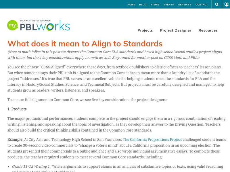 Pbl Works: What Does It Mean to Align Pbl With Common Core?