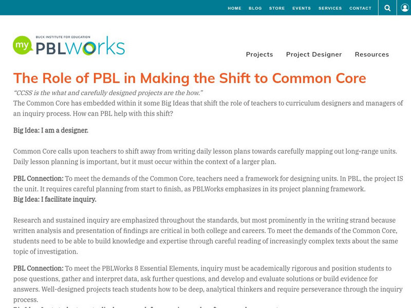 Pbl Works: The Role of Pbl in Making the Shift to Common Core