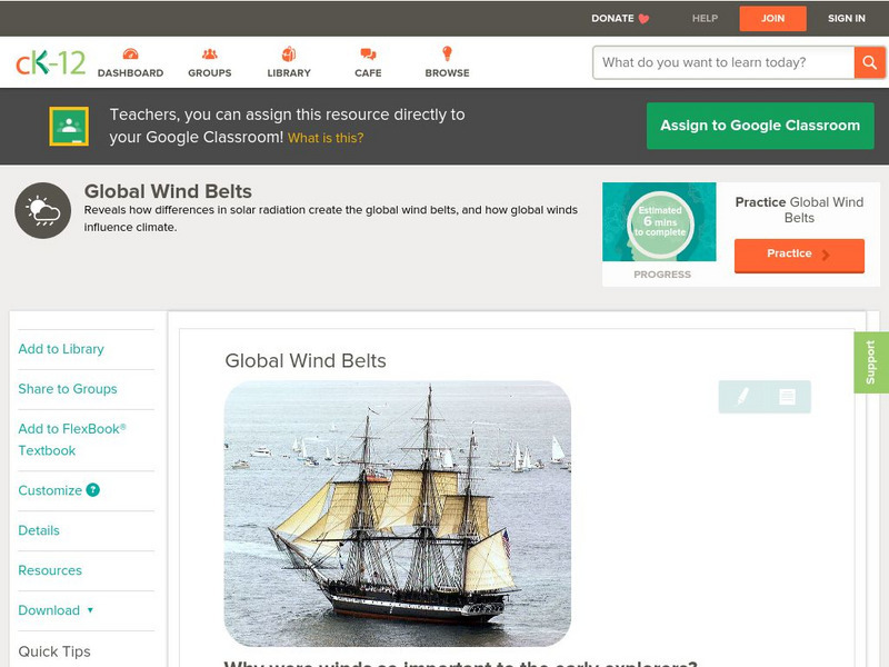 [Free Registration/Login may be required to access all resource tools.] Describes how regional differences in solar radiation create global wind belts.