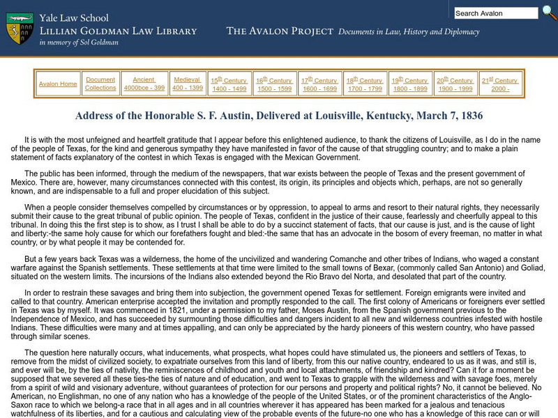 Avalon Project: Address of the Honorable s.f. Austin, March 7, 1836