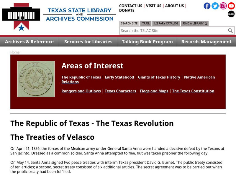 Texas State Library and Archives Commission: The Treaties of Velasco