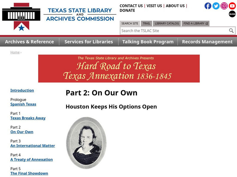 Texas State Library and Archives Commission: Hard Road to Texas 1836 1845: Houston Keeps His Options Open