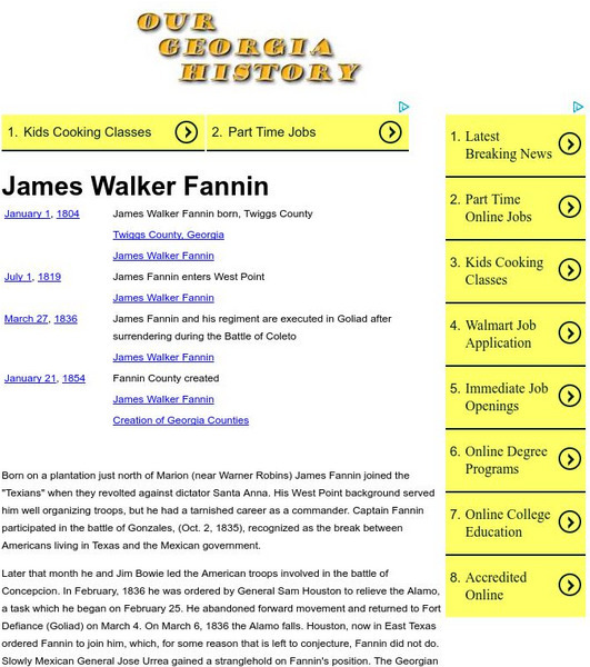 "Our Georgia History," presents a biography on James Walker Fannin. Includes background information and discusses his involvement in the Texas Revolution.