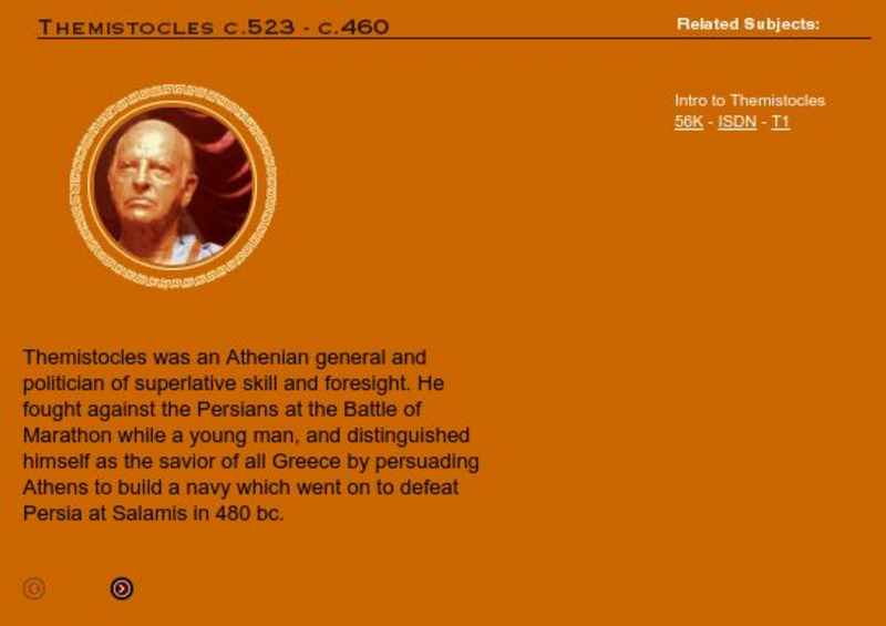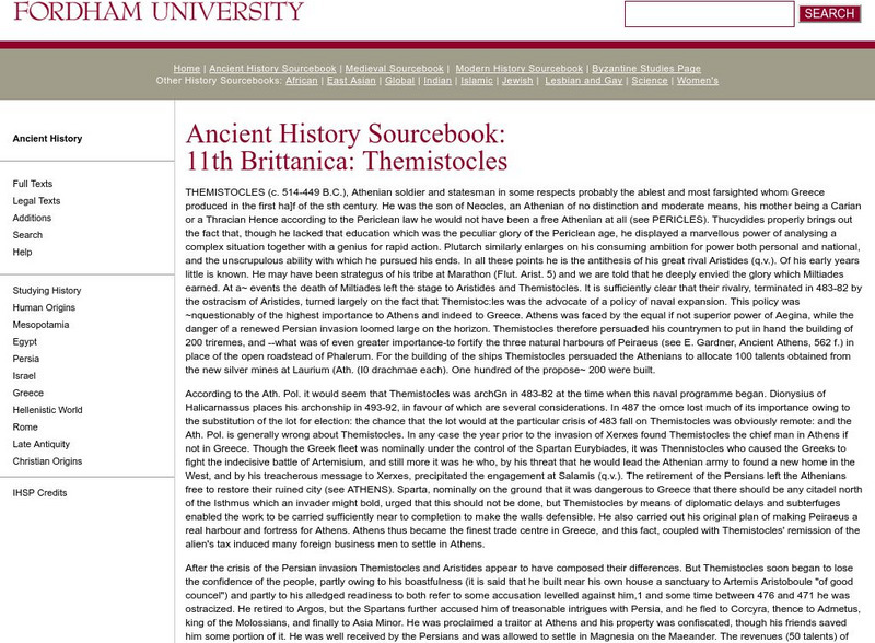 This site, which is provided for by the Fordham University, gives an extensive biography of Themistocles, creator of the Athenian navy.