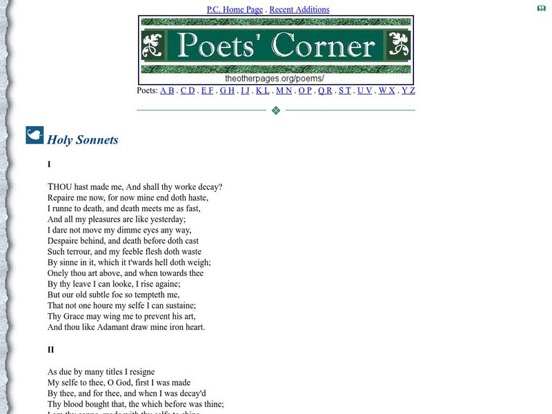 There are nineteen of John Donne's sonnets at this page. There is no commentary or other explanatory information.