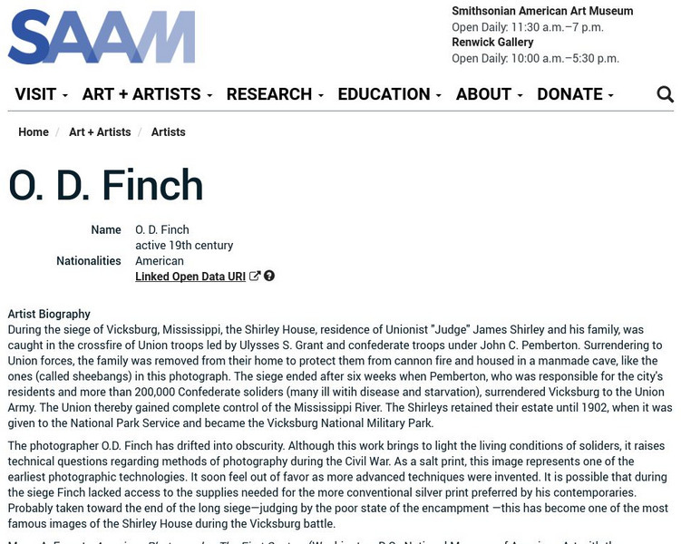 As part of the Smithsonian Art Museum's database of artists, O. D. Finch is described here along with information on his contributions to art through his photography.
