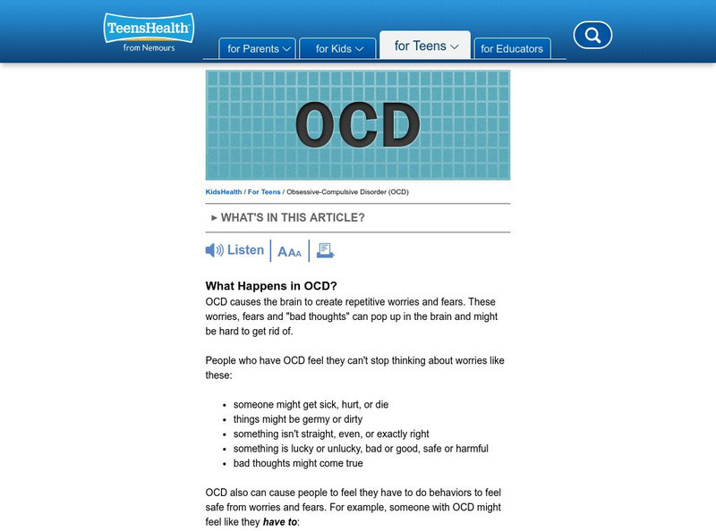 The website is an excellent resource for those with obssessive-compulsive disorder and also for those just wanting to know more about this disease. Learn how OCD is diagnosed and check out information on how the disease is treated and...