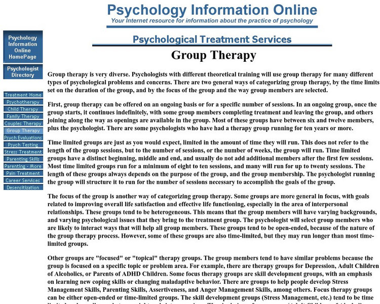 This four page site from Kids Heath will help a child that is going to see a therapist. This article takes the reader through a visit to the therapist and relates how they can help a patient. It also includes links to related articles.