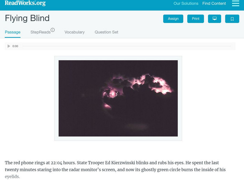 [Free Registration/Login Required] The paired passages "Flying Blind" and "Nighttime in Texas" are both suspenseful. Question sets are provided for each separately and combined.