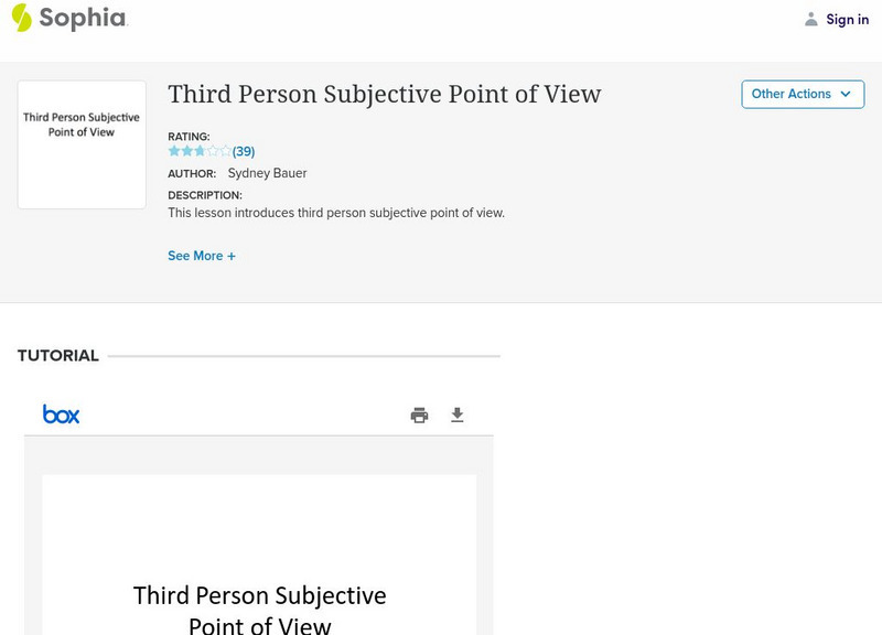 This lesson introduces third person subjective point of view. This tutorial lesson shares a short slideshow with the lesson's content.