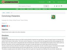 Students create vivid, active characters for a story. In this character lesson, students discuss the characters in books they are familiar with. Students create a list of novels they have read and discuss the character types. Students...
