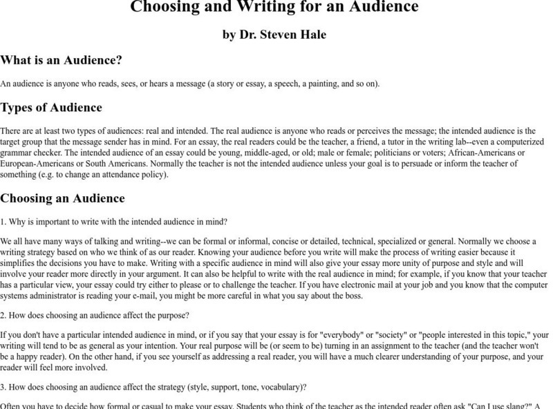 This resource goes extensively into the importance of establishing an audience when writing. It also defines types, how to choose, and how to write for an audience.