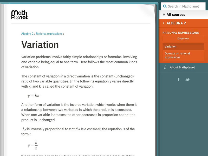 Math Planet: Algebra 2: Rational Expressions: Variation