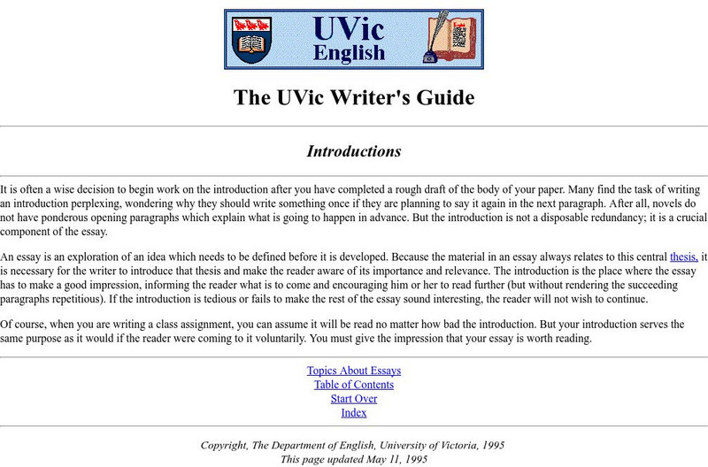 The U Vic Writer's Guide: Writing Essays: Introductions