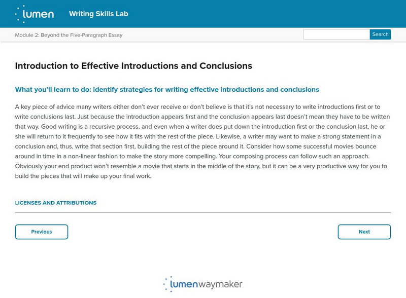 Lumen: Writing Skills: Introduction to Effective Introductions and Conclusions