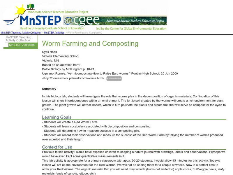 Young scholars explore vermicomposting, the species of worms needed and the proper climate for it. In this composting lesson students make their own worm compost bin.