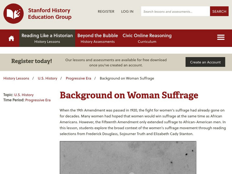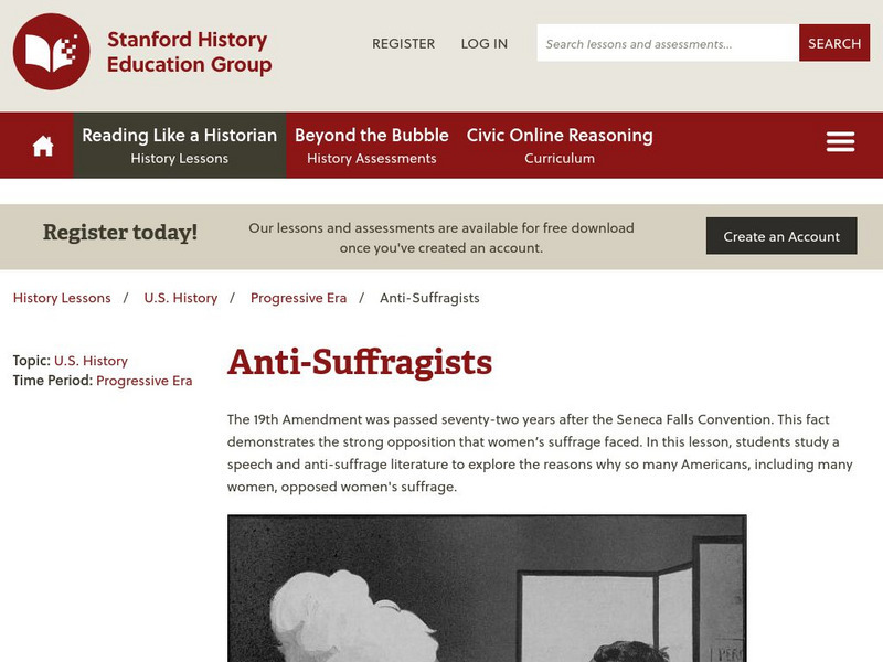 [Free Registration/Login Required] Students solve a problem surrounding a historical question by reading primary source documents. This historical inquiry lesson allows students to study a speech and anti-suffrage literature to explore...