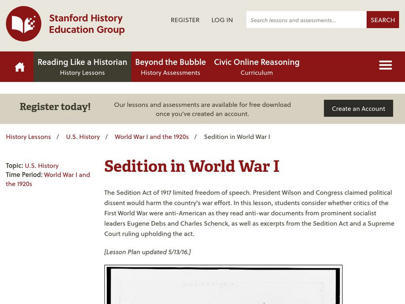 Sheg: Document Based History: Reading Like a Historian: Sedition in World War I