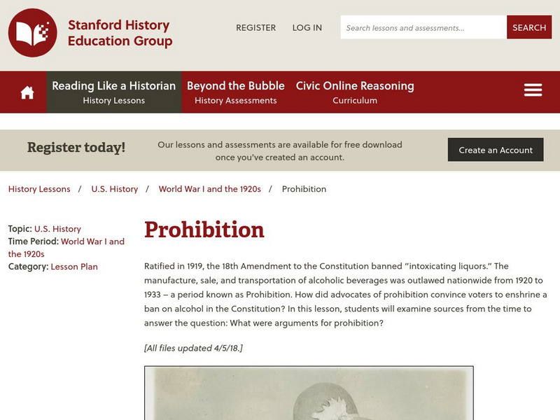 [Free Registration/Login Required] Young scholars read primary source documents to solve a problem surrounding a single historical question. This document-based inquiry lesson plan allows students to consider the 18th Amendment within...