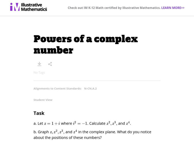 Illustrative Mathematics: N cn.a.2: Powers of a Complex Number