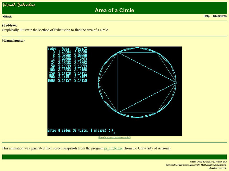 Students will be able to use The Method of Exhaustion and find the area of a circle by illustrating graphically.