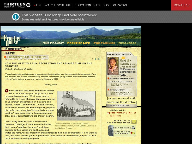 Wnet: Thirteen: Frontier Life: Recreation and Leisure Time on the Frontier