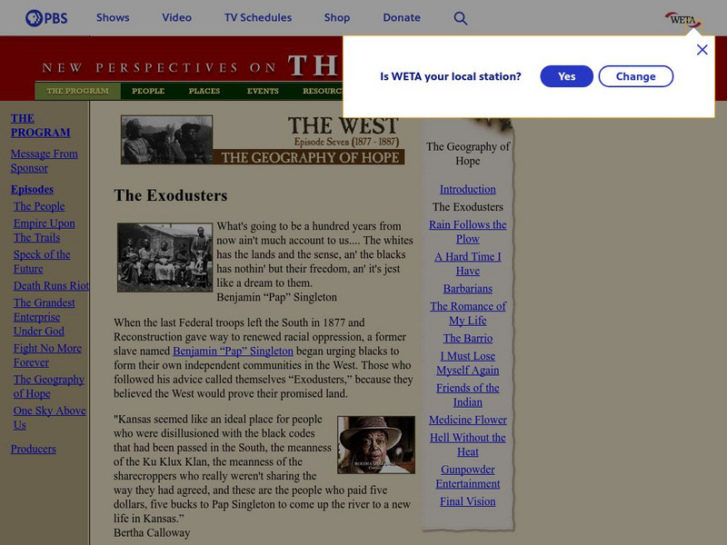 Contains a description of the Exodusters and their impact on the American West through their immigration.