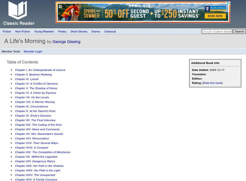 This is the complete text of the novel A Life's Morning by George Gissing.