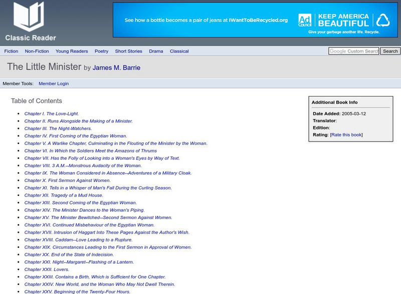 This is the complete text of the novel The Little Minister by James M. Barrie.