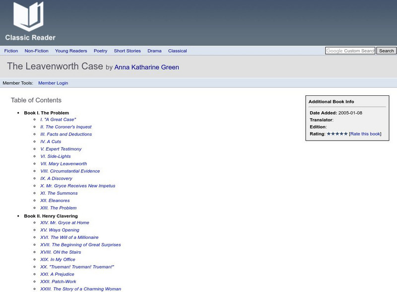 Classic Reader: The Leavenworth Case by Anna Katharine Green