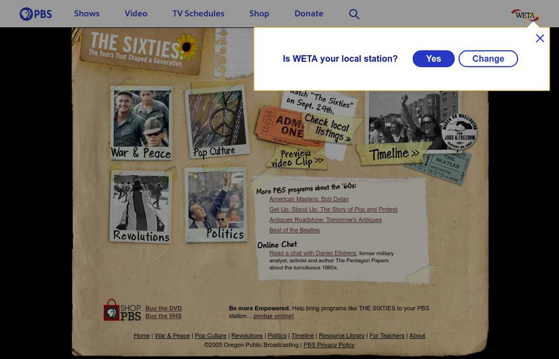 Online companion to a PBS documentary that tells the story of America during the 1960s includes a timeline of newsworthy events from the decade and a series of thematic vignettes that addresses the war in Vietnam, sixties pop culture,...