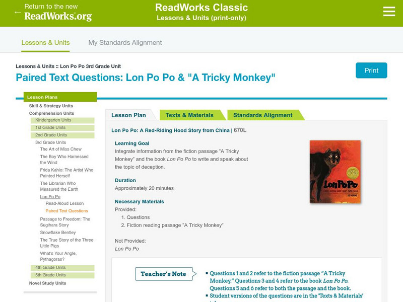 Read Works: "Lon Po Po" and "A Tricky Monkey"