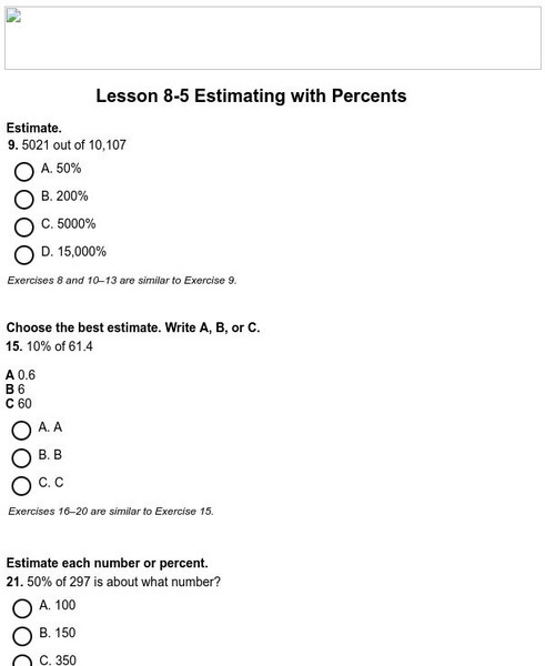 Holt, Rinehart and Winston: Homework Help Independent Practice: Estimating Percents