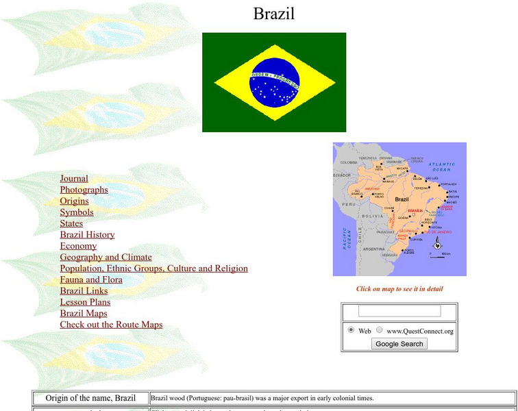 If you're doing a research paper on Brazil, this is a great place to begin. Has information about the history, people, geography, climate, economy, and more. Click on the map image to get more details and an enlarged view.